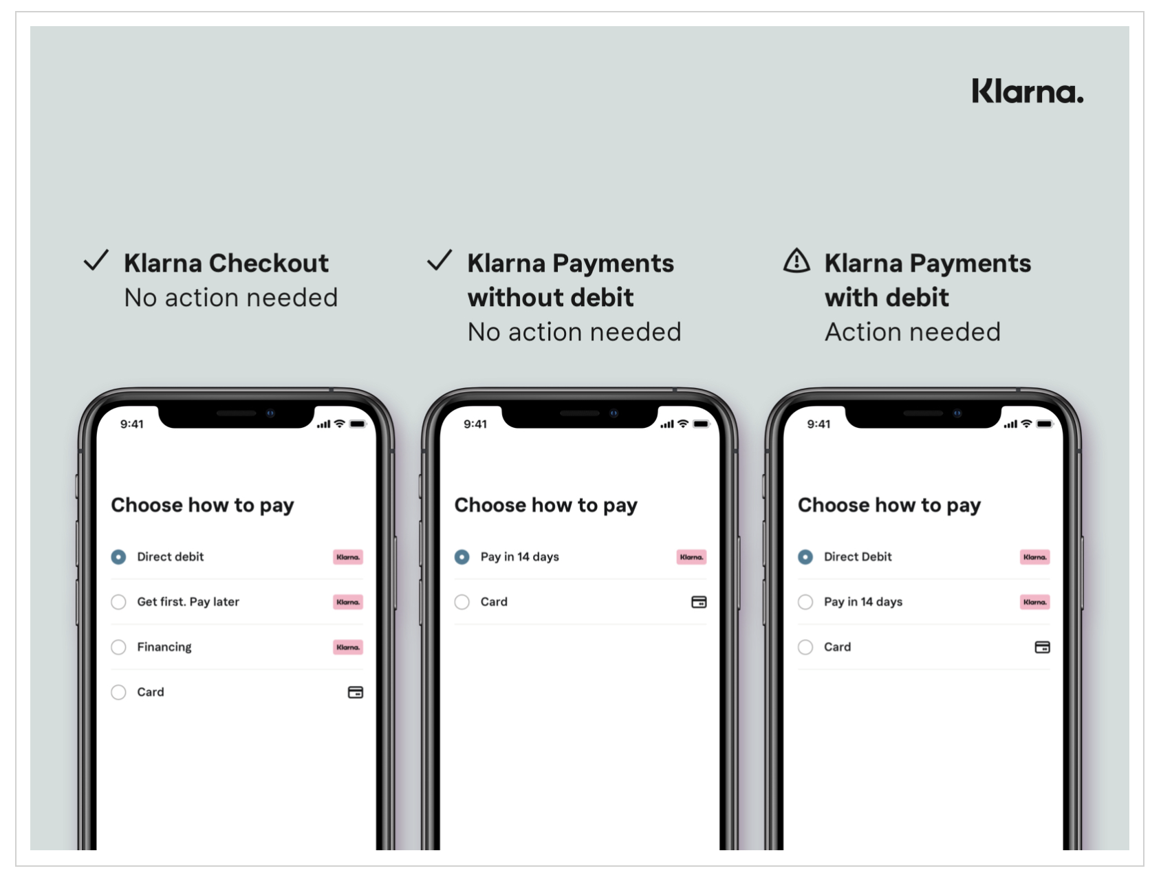 16.1.3 Klarna Payment (KP) with debit options: Action required.