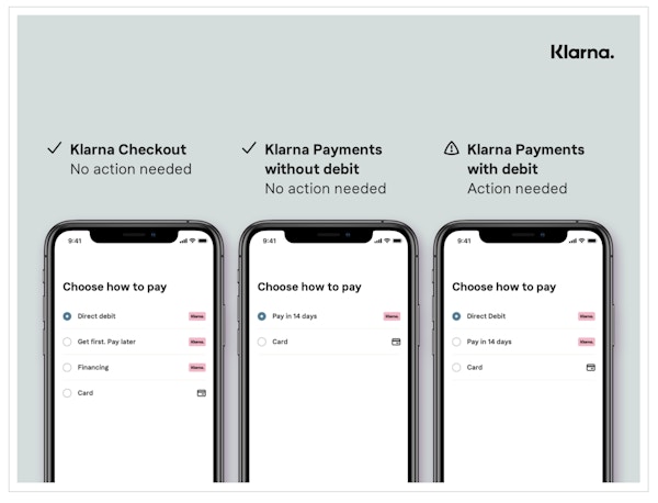 16.1.3 Klarna Payment (KP) with debit options: Action required.
